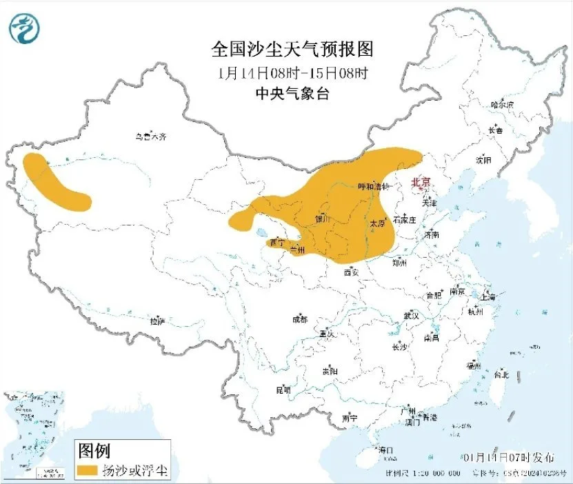 预计14日至16日,冷空气继续影响北方地区,新疆北部、内蒙古中西部、甘肃西部、宁夏北部等地部分地区有5~7级、阵风8~10级的大风。其中14日至15日,受冷空气大风影响,内蒙古中西部、甘肃中部、宁夏、陕西中北部、山西中北部、河北北部等地的部分地区有扬沙或浮尘天气,局地有沙尘暴。