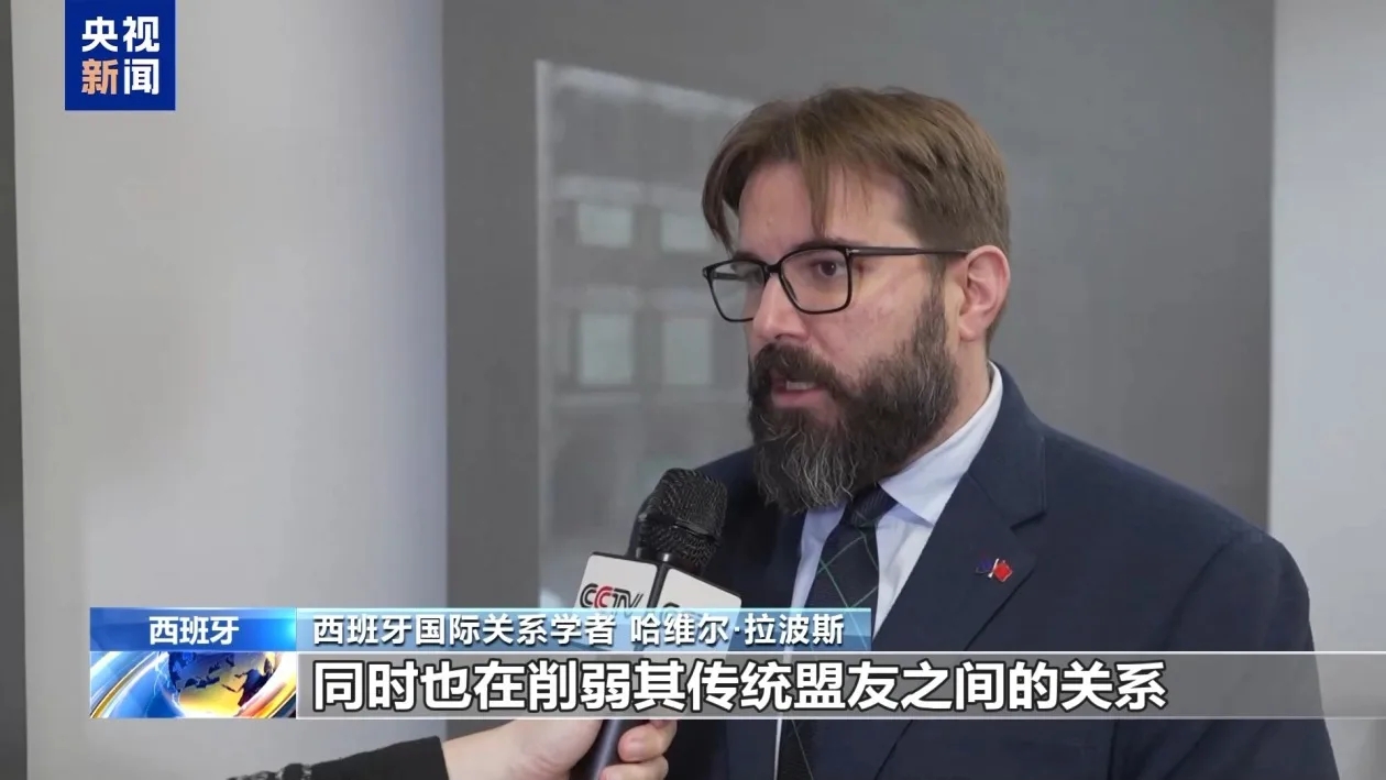 西班牙国际关系教授 哈维尔·拉波斯:目前,特朗普政府正在加剧北约内部的分裂,同时也在削弱其传统盟友之间的关系,而这些盟友正是欧洲国家,这是典型的“制造矛盾并从中得利”策略。美国认为这种做法可能对自己有利,认为欧洲的团结并不符合美国的利益,至少不符合现任美国政府的利益。