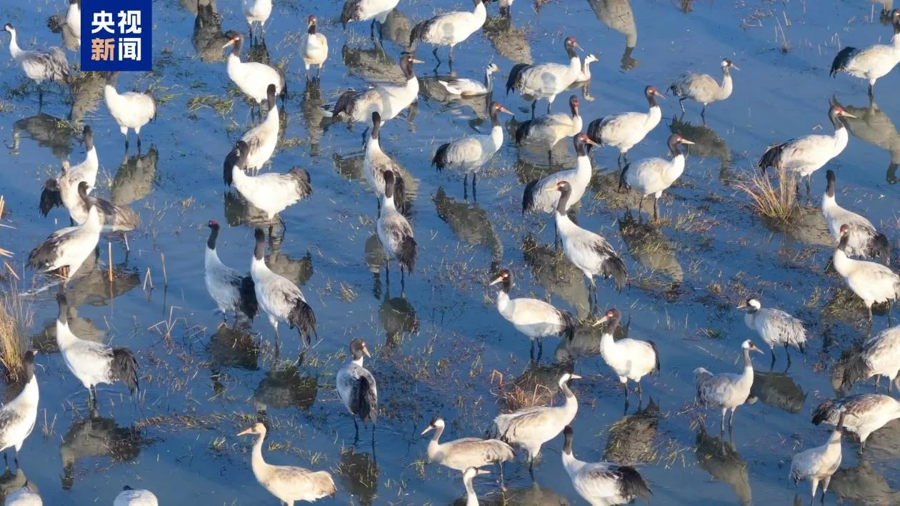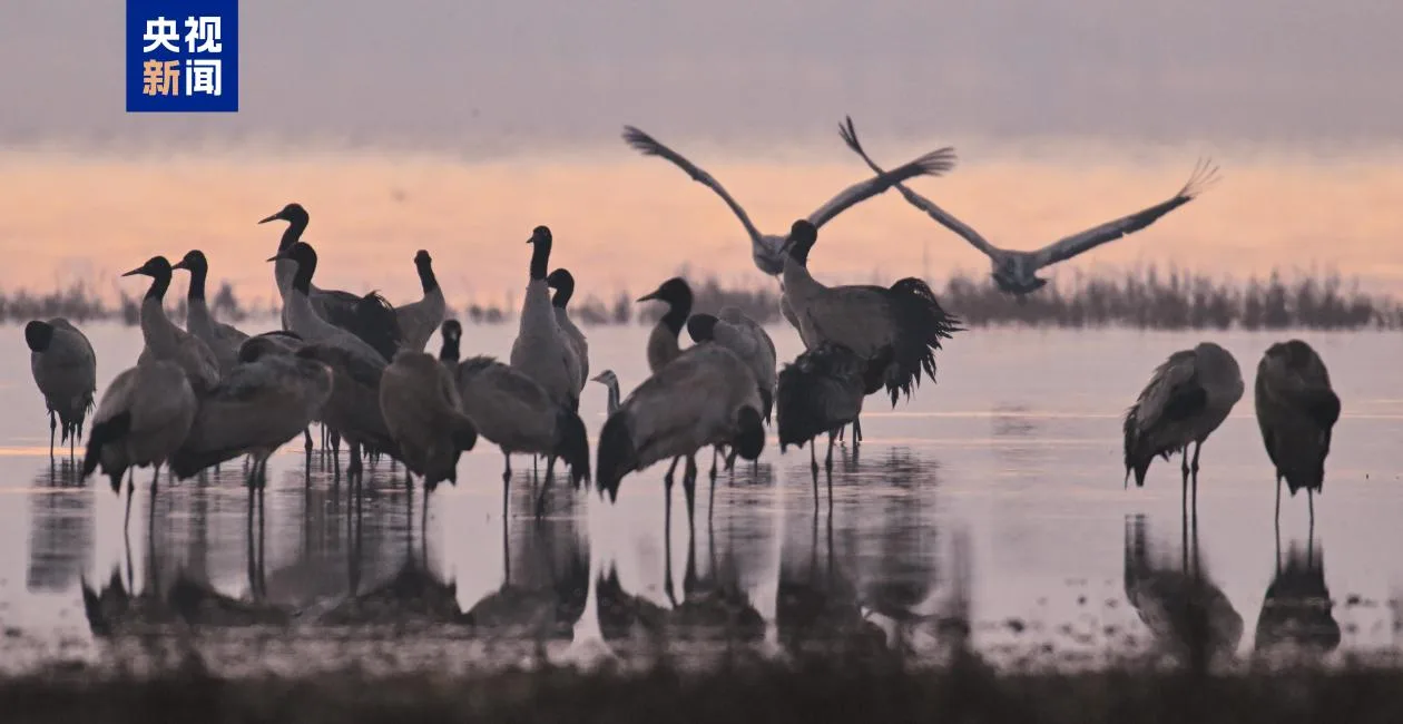 贵州草海成“越冬家园” 来看“高原精灵”在湿地“起舞”