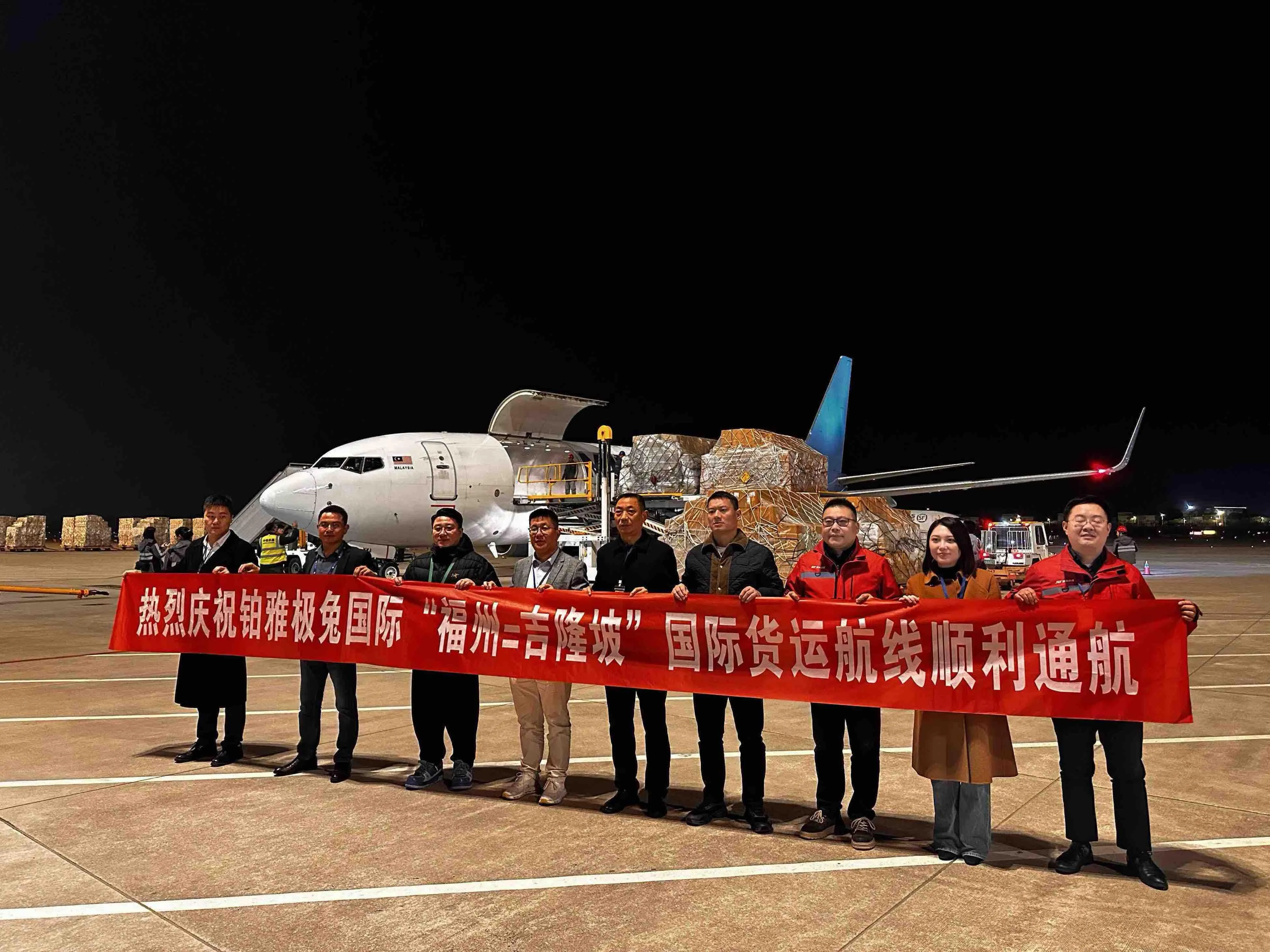 东南网1月13日讯(本网记者 陈楠)昨日,福建铂雅纭毅国际货运有限公司开通福州⇌吉隆坡国际全货机定期航线。首个航班于北京时间12日23:30降落福州长乐国际机场后,满载集成电路、电子产品、服饰鞋帽、跨境电商包裹等货品于13日凌晨0点30分起飞,并于05:30抵达马来西亚吉隆坡国际机场。