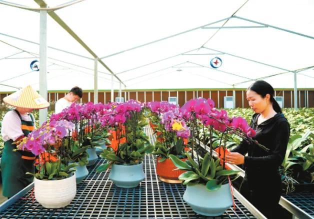科技赋能让备战更有底气。龙潭镇蝴蝶兰种植已形成从研发组培到育苗成花的完整产业链,通过智能温室精准调控环境,利用组培技术培育优质种苗。90后海归严鸿带领团队攻克染色技术,使喷绘定制品种花期可达40天,单价显著提升,月销售额稳定突破百万元。随着年关临近,一辆辆冷链车陆续将龙潭镇的“幸福花”送往全国各地。