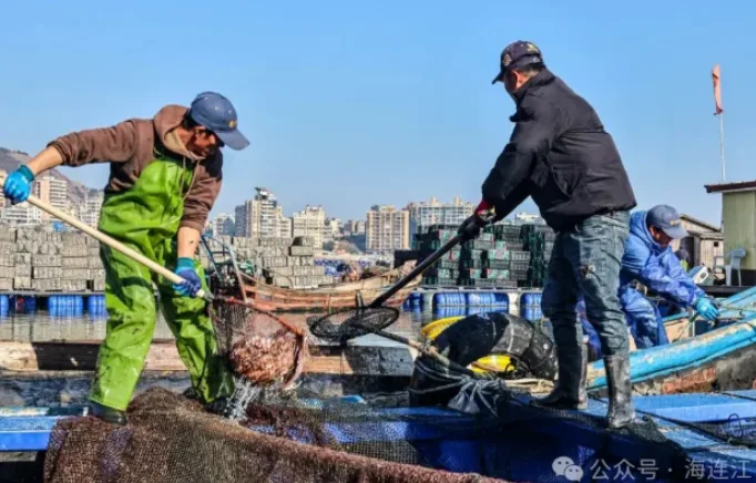 福州连江海域养殖的20多万头章鱼喜获丰收。图源:海连江