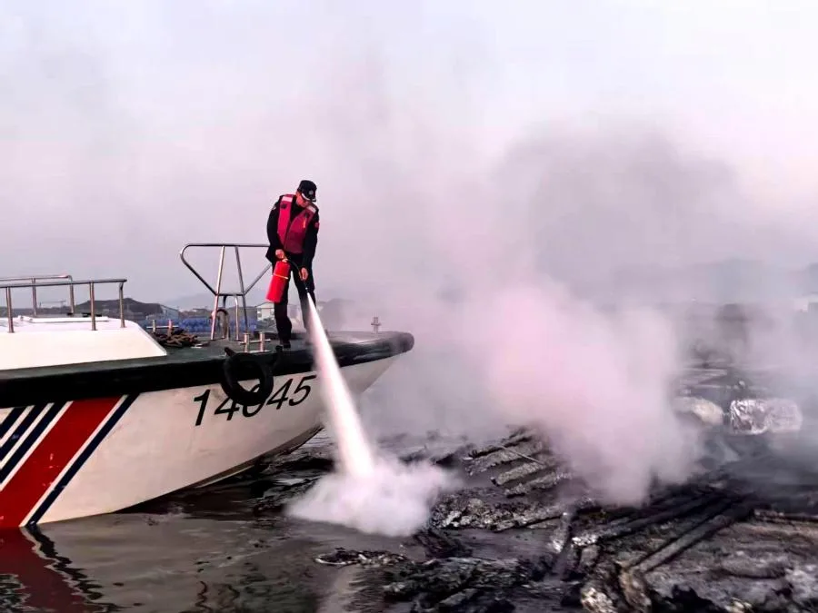 经过近两小时的全力扑救,火势被彻底扑灭。随后,海警执法员协助渔民清理现场,并进行了全面检查,确保无复燃隐患。由于处置及时、措施得当,此次火灾未造成人员伤亡,群众财产安全得到了最大程度的保护。