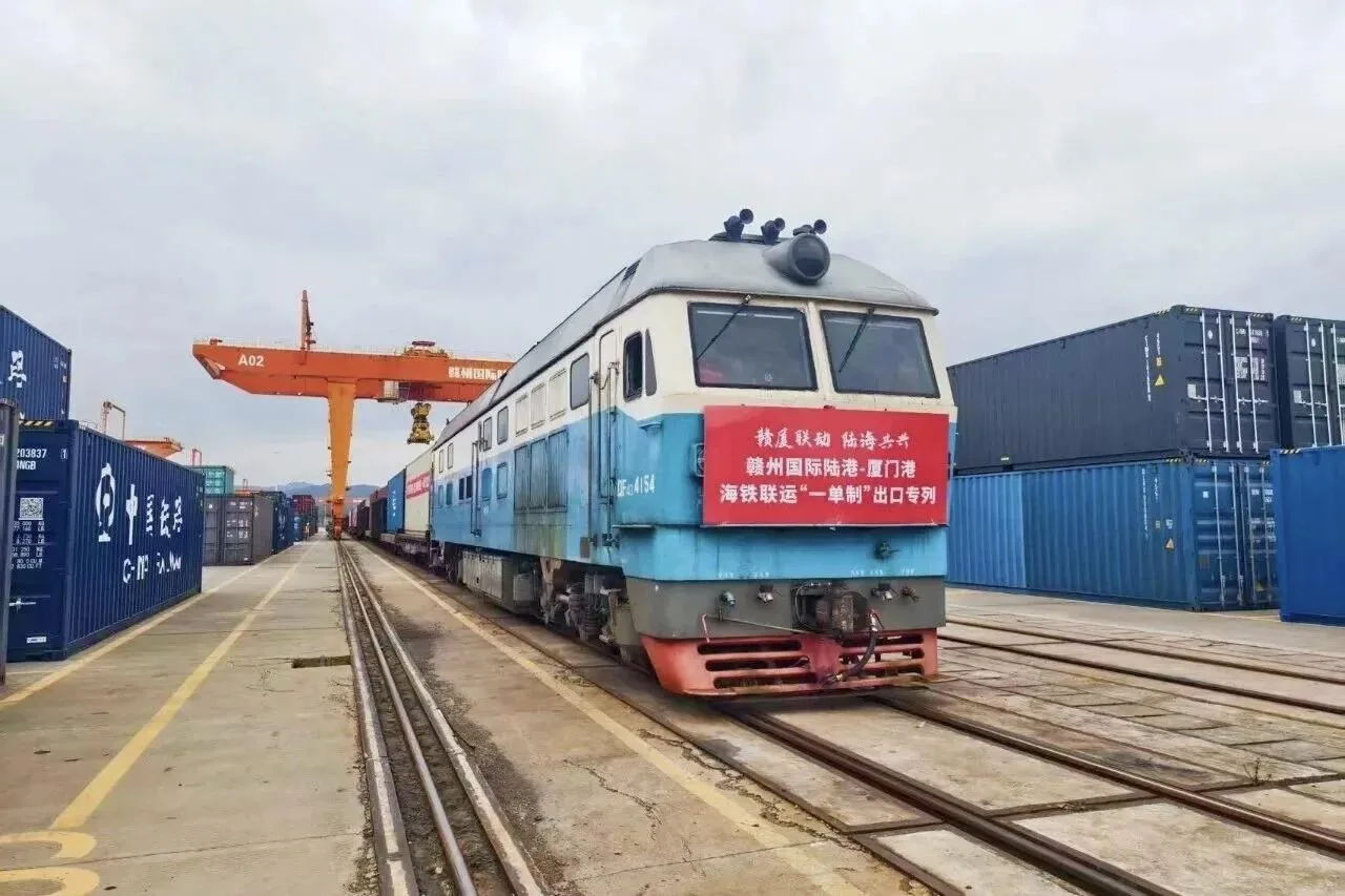 2025年11月18日,一列满载赣州家具、竹制品、门窗的海铁联运专列,从赣州国际陆港缓缓驶出,奔向厦门港,随后搭乘船舶前往东南亚和我国台湾等地。这是赣州国际陆港—厦门港海铁联运“一单制”出口首发专列。在“一单制”模式下,货物运输“一次委托、一单到底、一次结算”,全程“一箱到底”,大幅简化操作流程,全程可控可追溯,也降低了货损率,提升供应链稳定性。
