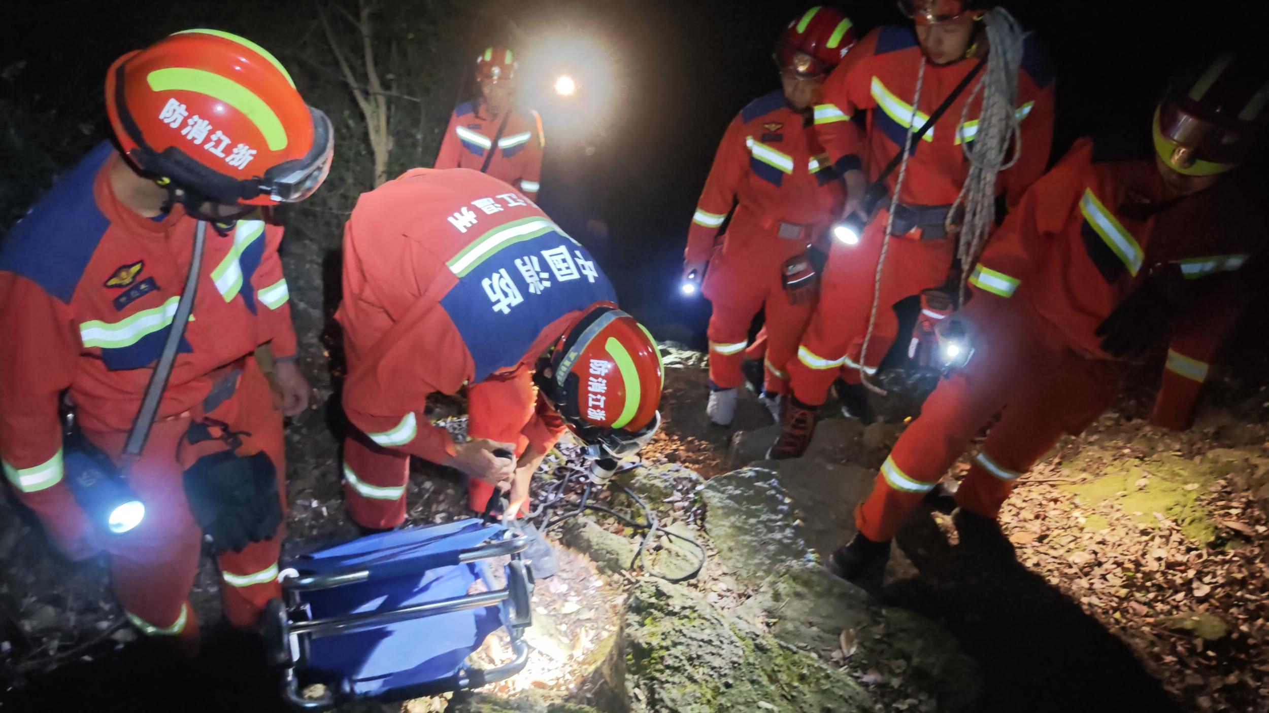 闺蜜团雁荡山徒步体力透支 暖心驴友与消防接力救援