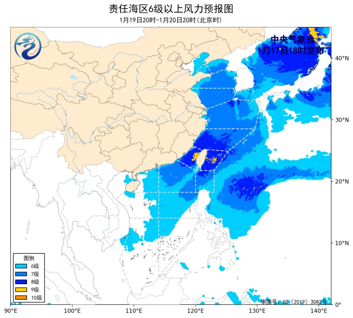 19日20时至20日20时,台湾海峡将有7~9级、阵风10级的东北风,东海南部海域、台湾以东洋面将有7~8级、阵风9级的偏北到东北风,渤海海峡、黄海大部海域、东海北部海域、巴士海峡、南海东北部和中东部海域将有5~7级、阵风8级的偏北到东北风,渤海、南海南部海域将有4~6级、阵风7级的偏北到东北风,琼州海峡、南海西北部海域将有4~6级、阵风7级的偏东风。