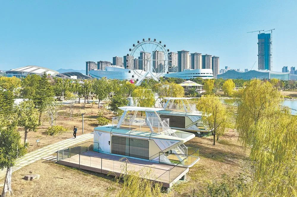 近日,位于闽侯县上街镇旗山湖公园桃花岛区域的“太空舱”集群项目进入试营业阶段。12座“太空舱”充分整合舱体及户外延展空间,引入临湖茶空间、露营体验区、休闲娱乐空间、商务接待中心、亲子互动体验馆等多元业态。该项目将打造成为集生态休闲、学术交流、商务接待、亲子研学于一体的复合型空间,与公园现有的游船、儿童乐园以及运动场地等设施形成联动,让广大市民游客体验一站式高品质服务。 (福建日报记者 张文奎 通讯员 吴国棋 摄影报道)