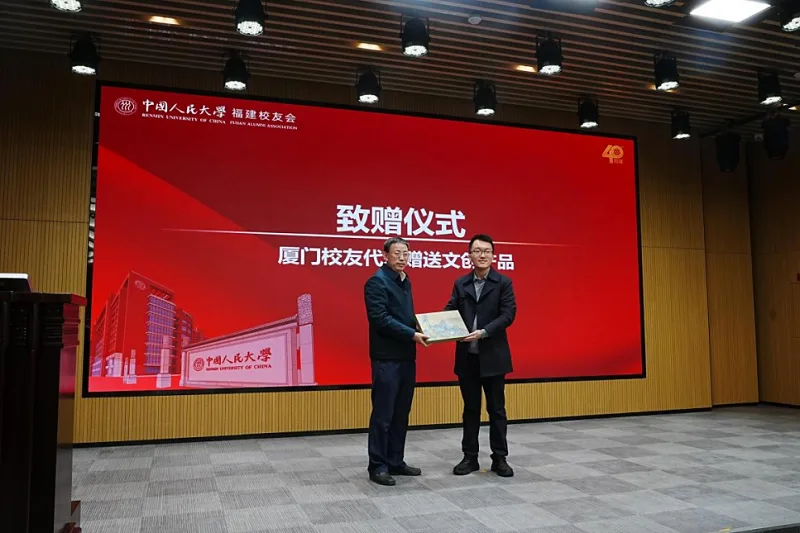 厦门校友代表现场向福建校友会赠送了富有地方特色的文创产品,表达了八闽校友之间的深情厚谊与美好祝愿。