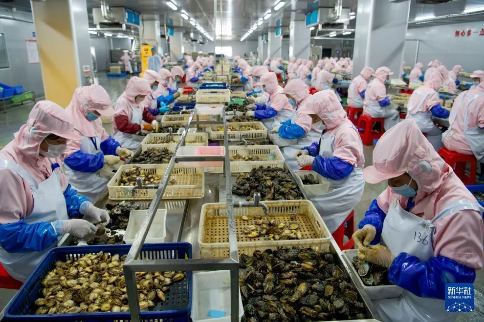 工人们在处理加工鲍鱼。新华社记者 魏培全 摄