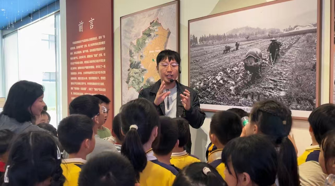 上林垟研学团队针对不同年龄段学生需求,构建了阶梯式课程体系:面向小学低龄段的“农田初识·作物探秘”课程,借助粮仓主题馆基础展区,讲解粮食储存常识与农耕机器基础功能,帮助学生建立农业生产初步认知。“原来我们吃的大米要经过这么多步骤才能到餐桌上,农民伯伯太辛苦了!”昆阳镇第七小学二年级学生李一诺在听完“粮食的旅程”讲解后,认真地对老师说,“以后我再也不会浪费粮食了。”