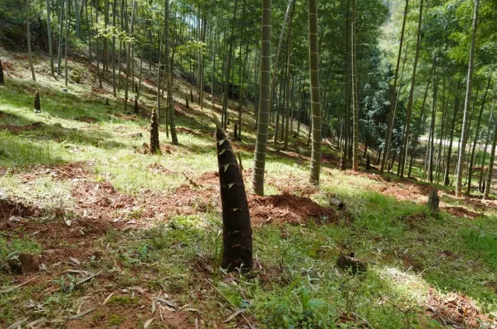 南平市松溪县花桥乡是国家级生态乡,竹林资源丰富,全乡竹林面积约2万亩,其中苦竹林(茶杆竹)面积约6200亩,主要分布在源尾、塘边、路桥、大浦寺坑、九蓬5个村。这里气候湿润、土质肥沃,为苦笋提供了得天独厚的生长环境。