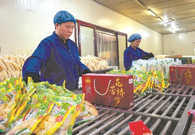 在夷山物产的车间内,工人将花桥苦笋产品装进礼盒。 福建日报记者 郑晓强 摄