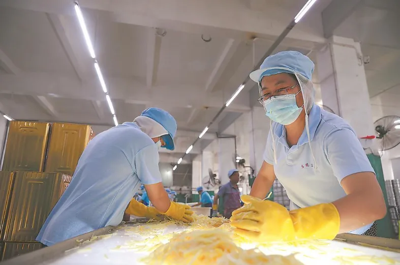 南靖一家农副产品企业的生产车间内,工人在加工竹笋。图片来源:南靖县融媒体中心