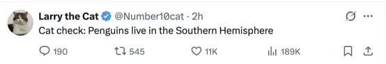 “科普一下:企鹅生活在南半球。”↓