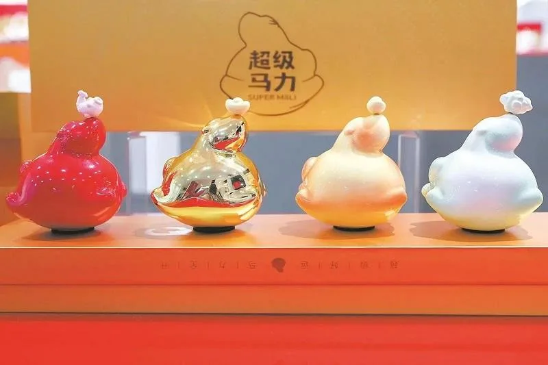而在世界陶瓷之都德化,当地陶瓷企业将中国传统生肖文化与陶瓷艺术深度融合,掀起了马年生肖瓷的设计与研发热潮。顺美集团与台湾设计师合作的“马上封侯”储物罐颇具巧思,马鞍部分为可开合的储物空间,便于收纳钱币、糖果等小物。仟信慈艺工作室则另辟蹊径,创作了一组“萌萌哒”的“超级马力香薰摆件”,灵感来源于经典游戏《超级玛丽》中“顶出蘑菇”的互动场景,小马呈昂首跃起之姿,可顶出四款寓意吉祥的扩香配件。创始人苏巧龙介绍:“希望打破传统生肖瓷的受众边界,吸引更多元的客户群体,不论是自用还是送礼,都能找到心仪之选。”