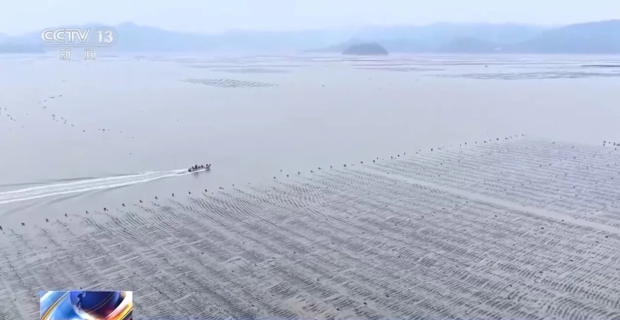 在霞浦县三沙镇东壁村海域,成排养殖绳沿着海面铺开。这片裙带菜苗示范养殖区的面积超100亩,预计可产出裙带菜嫩苗200多吨。