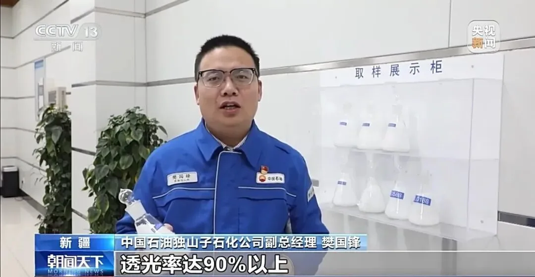 中国石油独山子石化公司副总经理 樊国锋: 我们的POE(聚烯烃弹性体)透光率达90%以上,制成的光伏胶膜,可最大程度提升光伏组件发电效率;优异的耐候性、水汽阻隔性能,能有效保护组件内部电路,让光伏板寿命从25年延长至30年以上。