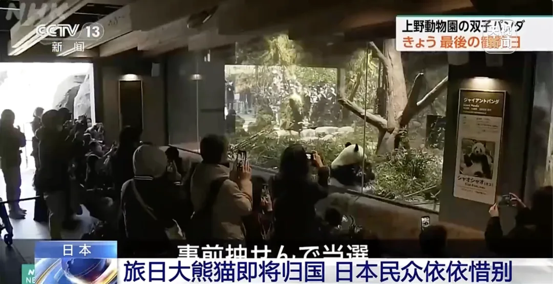 当地时间1月25日,日本东京上野动物园的两只旅日大熊猫“晓晓”和“蕾蕾”迎来开放参观的最后一天。大批民众从日本各地赶来与它们告别,很多人都没忍住落泪,还有小朋友表示“熊猫要离开了,好寂寞”。