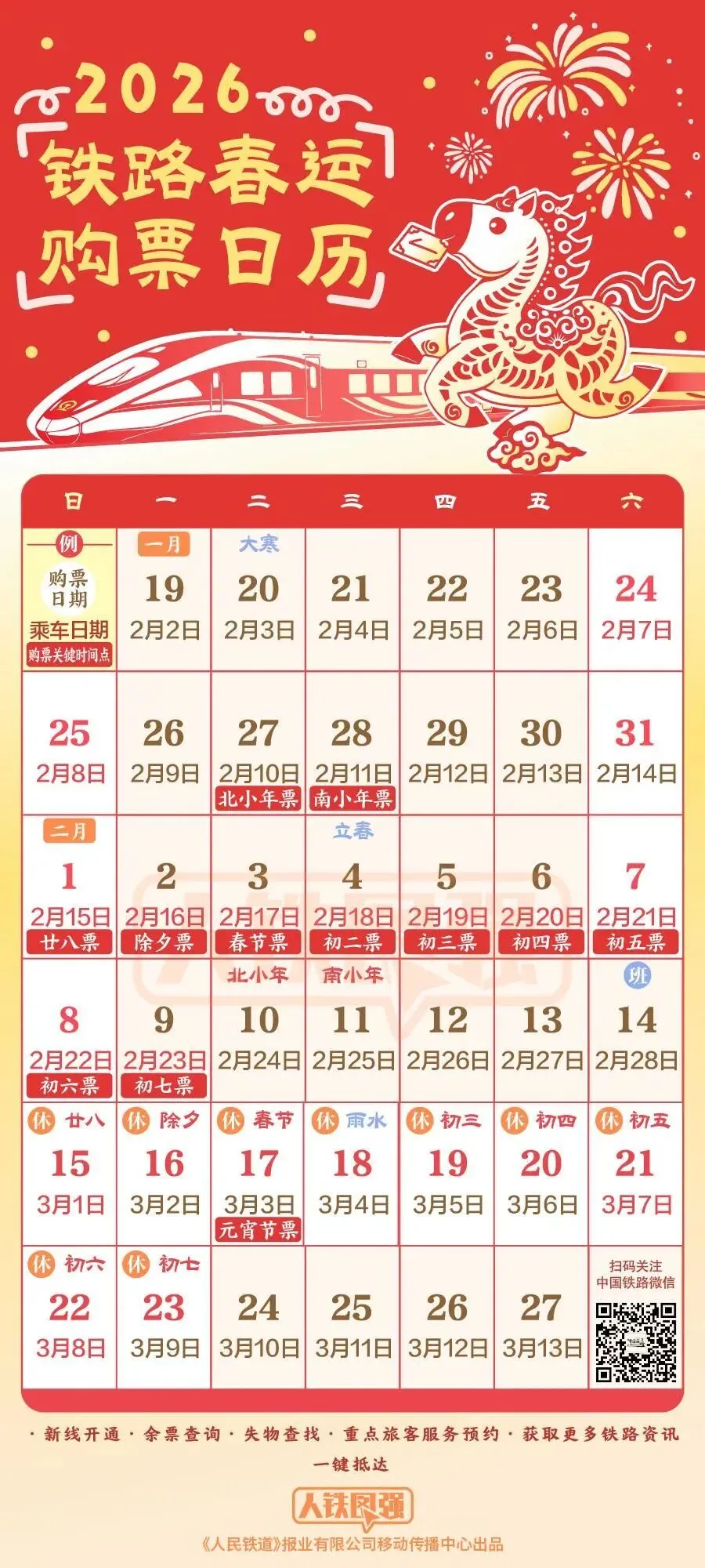 2月9日可购买大年初七(2月23日)的返程火车票;
