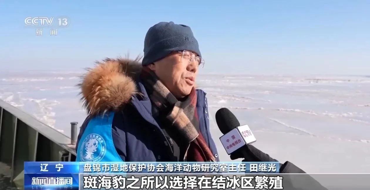 盘锦市湿地保护协会海洋动物研究室主任 田继光:斑海豹之所以选择在结冰区繁殖,一是能够躲避天敌,因为冰排给它掩护色和相对安全的地方。海豹这些年已经形成了这种繁殖习惯,严寒对它并没有什么影响,海豹有较厚的脂肪和皮毛能够御寒。