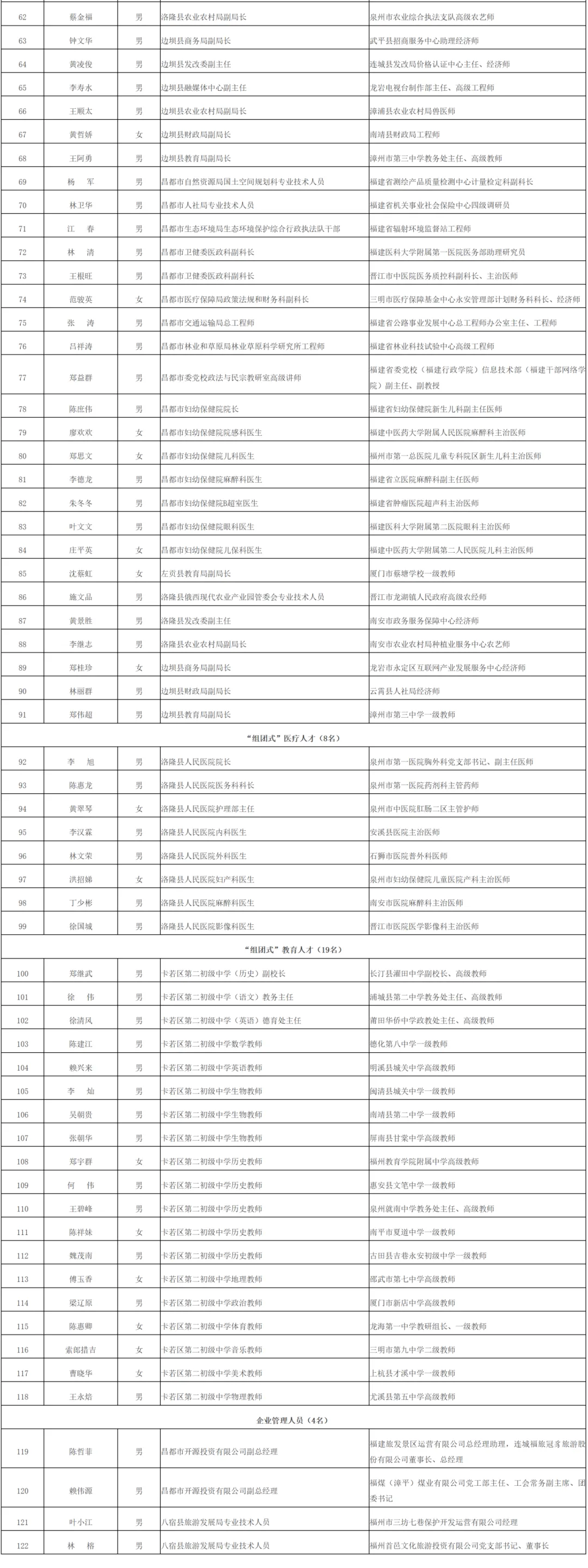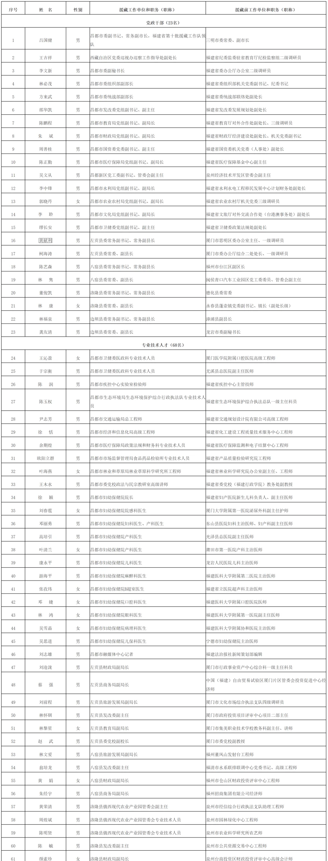 福建省第十批援藏工作队人员名单