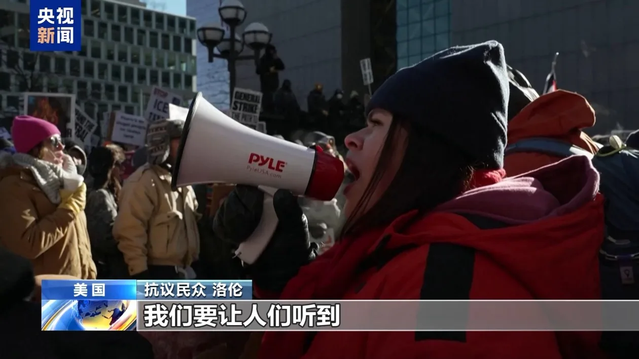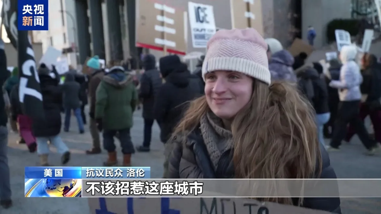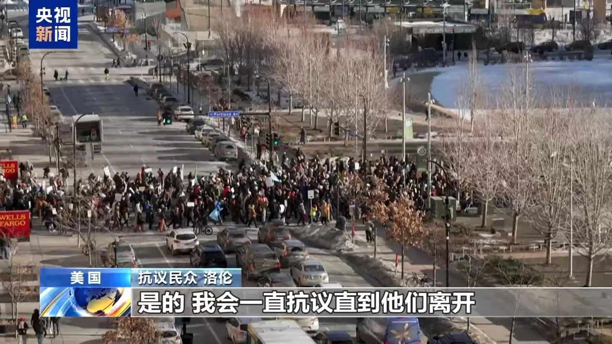 当天,大批民众来到明尼阿波利斯市中心的街头,高喊“移民与海关执法局滚出去”等口号,表达对联邦人员暴力执法的不满。