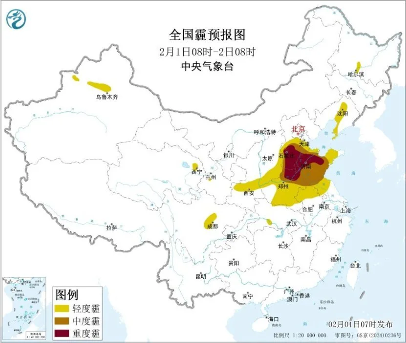 此外,预计1日至4日,华北南部、黄淮中西部、江汉等地的部分地区有轻至中度霾天气,局地有重度霾。2月5日起,受冷空气影响,上述地区霾天气自北向南逐渐减弱消散。公众外出请做好个人健康防护,易感人群建议减少户外活动。