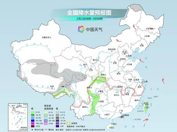 后天,新疆北疆北部和南疆西部山区、西藏西部和南部、青海南部、甘肃南部等地部分地区有小雪或雨夹雪,其中,西藏西部局地有中到大雪。西藏东南部、陕西南部、四川盆地东部和西部、贵州西部、台湾岛等地部分地区有小雨。
