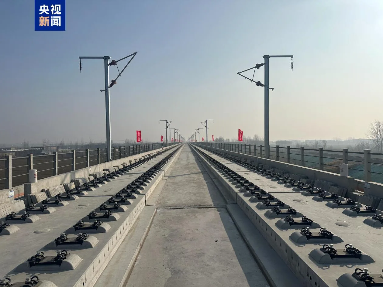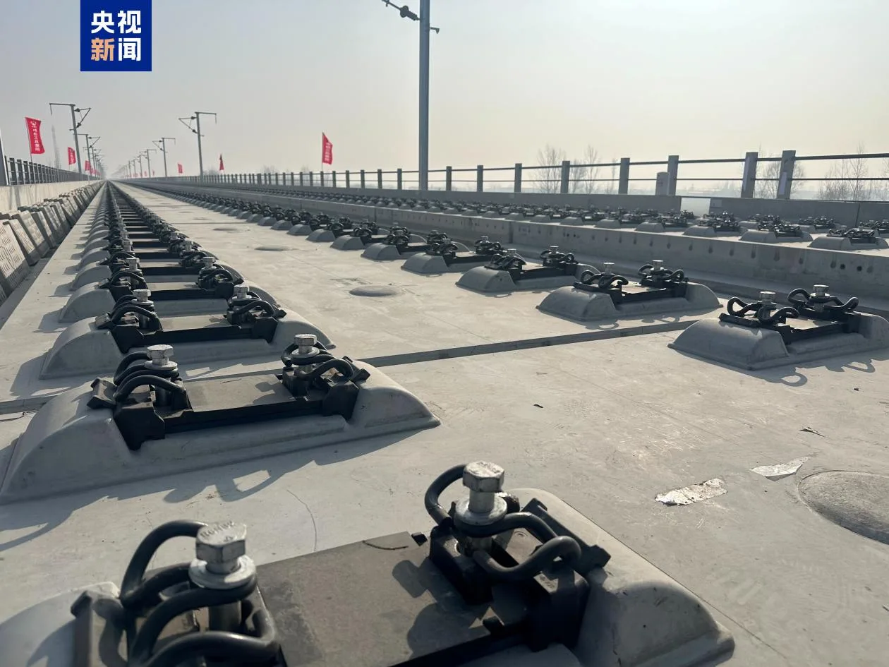 2月1日上午,在位于河北省保定市顺平县的雄忻高铁跨京广铁路特大桥上,随着首对500米长钢轨平稳、精准地铺设在无砟道床上,标志着雄忻高铁正式进入铺轨施工阶段。