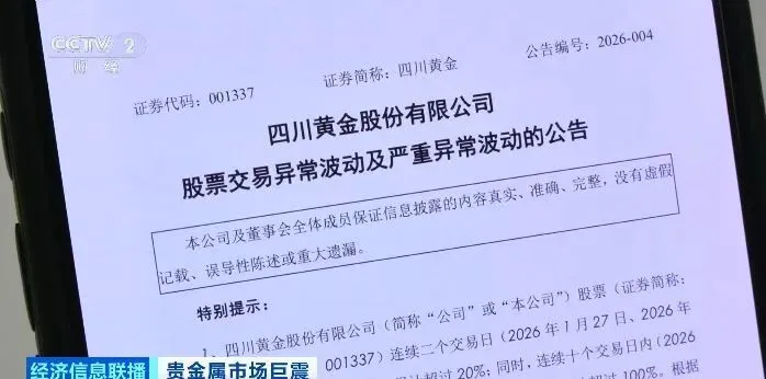 周三,伦敦现货黄金继续攀升,收涨于5400美元/盎司上方。在市场情绪推高之际,一场集体性的“风险提示”不约而同到来。当日晚间,多只黄金概念股发布公告,提示交易风险。豫光金铅、四川黄金、中国黄金均表示,公司股价短期涨幅较大,可能存在下跌风险;赤峰黄金、西部黄金也发布公告,提示投资者注意二级市场交易风险。