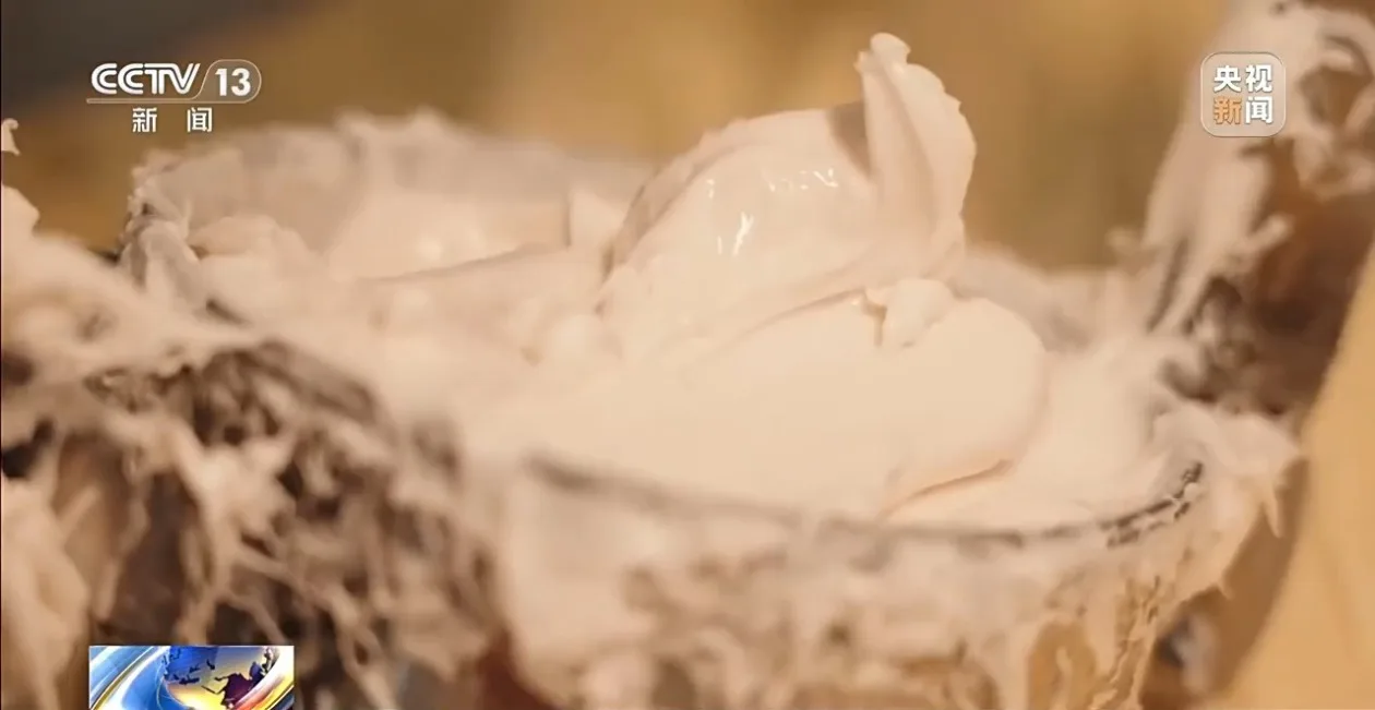 总台记者 杨雪:这个肉末和紫苏的搭配,让这个汤底鲜而不腻,当地人还会搭配这样一根油条,裹满汤汁,更是双重满足。更绝的还是这个粉,除了爽滑筋道,还自带微微的酸味,当地人也把这个酸,称作是生榨粉的“灵魂”。