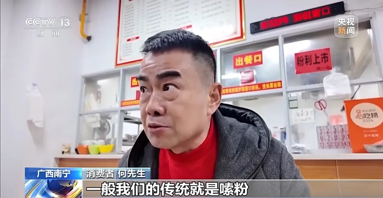 消费者 董周:每个星期会吃个两三次,这个生榨粉它本来就是发酵的一个米粉,然后会加一些酸笋,加一些酸辣椒,它就没那么腻,早上吃起来会更加开胃一些。