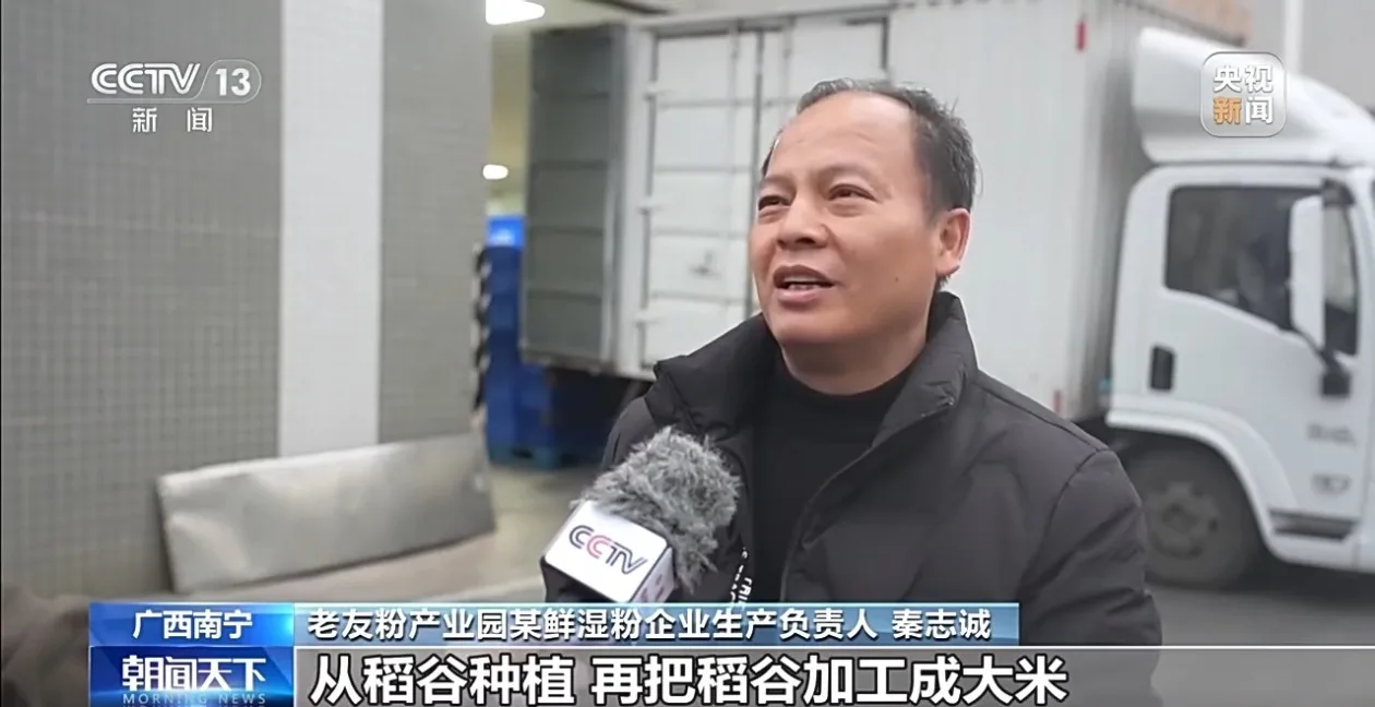 老友粉产业园某鲜湿粉企业生产负责人 秦志诚:从稻谷种植,再把稻谷加工成大米,然后再把大米生产米粉,然后再到终端米粉店。每一年的话,差不多是2万吨。