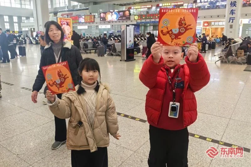 春运首日,福州火车站内推出多项活动,为旅客送上新春的祝福(东南网记者 冯川叶 摄)