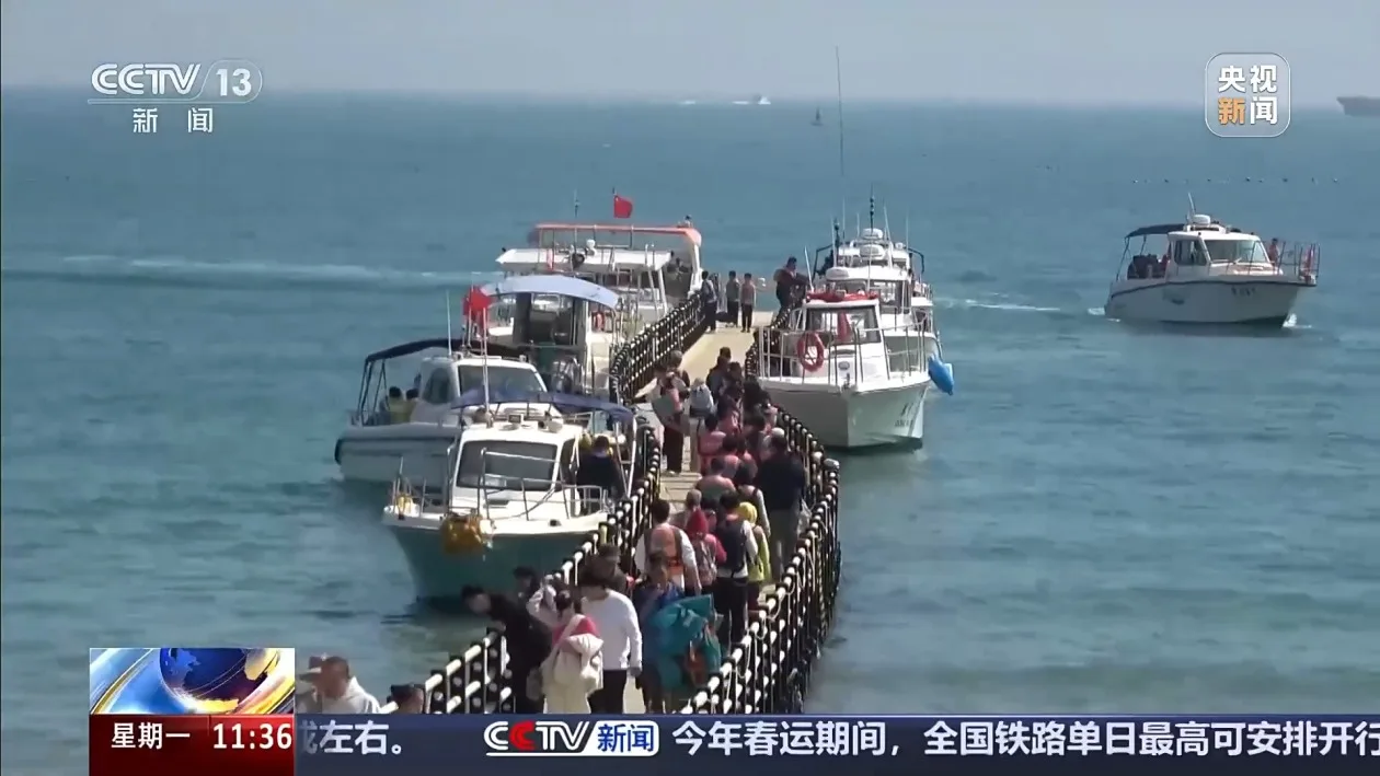 1月25日临近中午,记者来到广西北海涠洲岛南湾码头,看到等待上船观看鲸鱼的人已经排成了长队,记者询问还能不能买到船票,被工作人员告知整个下午已经没票了。