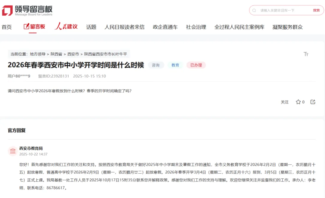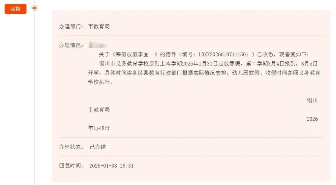 回复关于寒假时间的提问