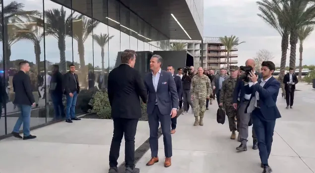 高调“站台”?美防长到访得州星际基地,与马斯克握手同框